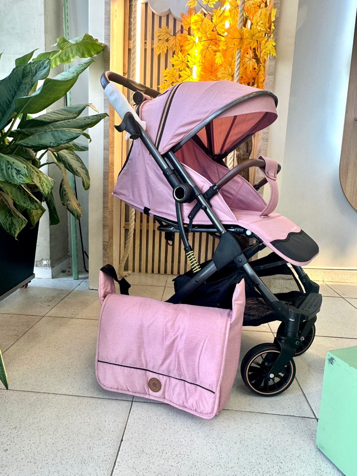 Fabricado con estructura en aluminio color cobre, este coche combina resistencia, ligereza y elegancia. Su arnés de 5 puntos ajustable mantiene a tu bebé seguro, mientras que el respaldo reclinable en 3 posiciones y el descansapiés graduable aseguran la máxima comodidad desde recién nacido hasta los 4 años.