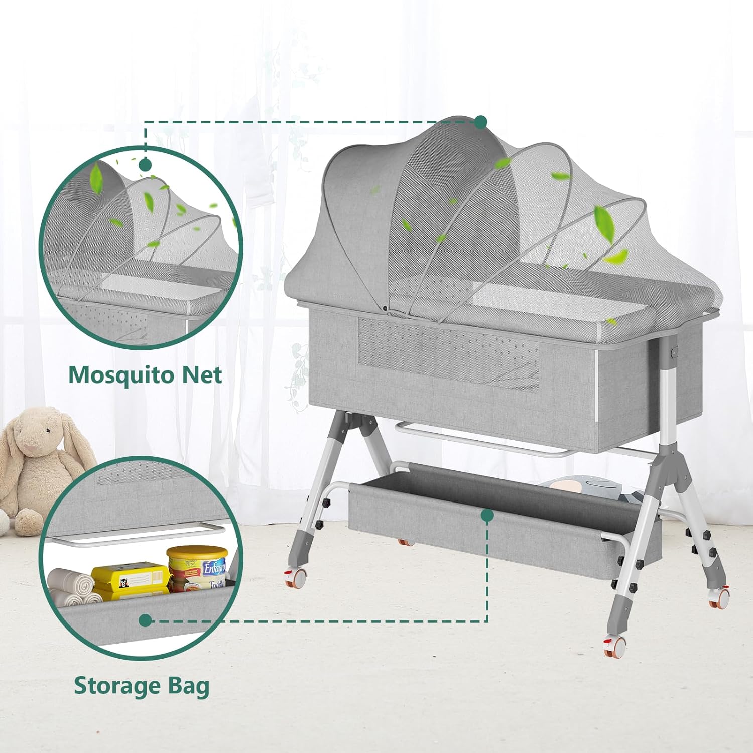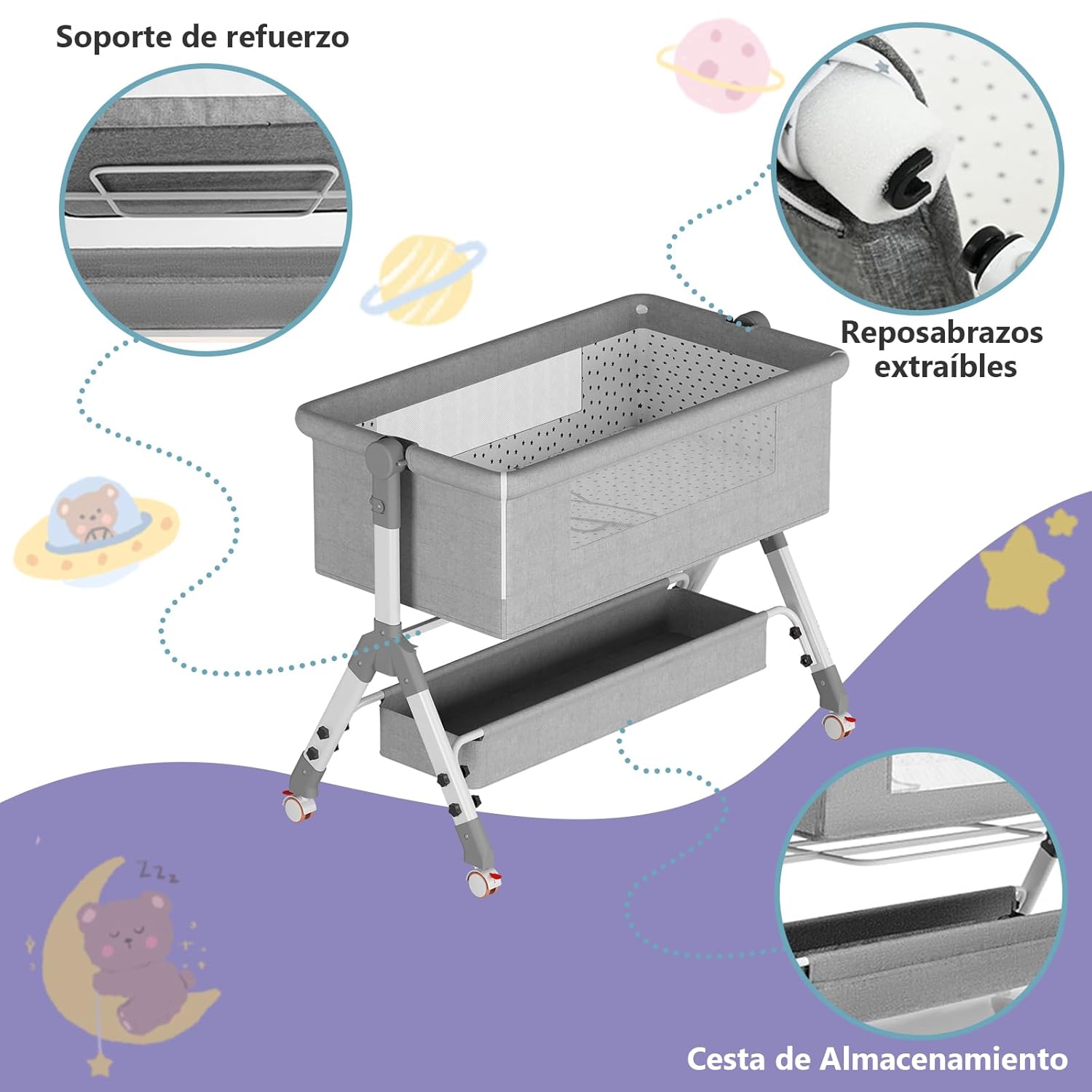 - 🌙 Descanso seguro y diseño multifuncional: perfecta como cuna, colecho o moisés portátil con altura ajustable.