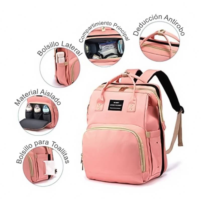 - 🧺 Bolso 3 en 1: pañalera, cambiador y cuna portátil.