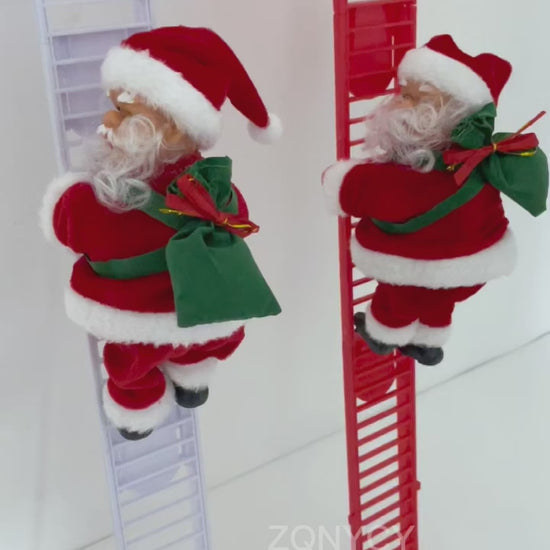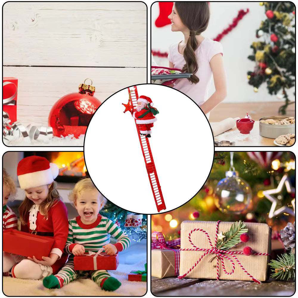 Este adorable Papá Noel animado escala una escalera de cuerda mientras suena una alegre melodía navideña 🎶. Fabricado en plástico resistente con detalles cuidadosamente diseñados —como su clásica barba blanca, traje rojo brillante y expresión sonriente—, este Santa Claus se convertirá en el protagonista de tu decoración.