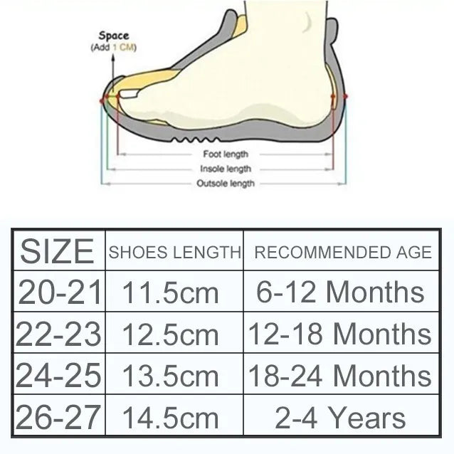 👣 Talla 22-23: 12 a 18 meses | Longitud del pie: 12.5 cm | Longitud interna: 13 cm